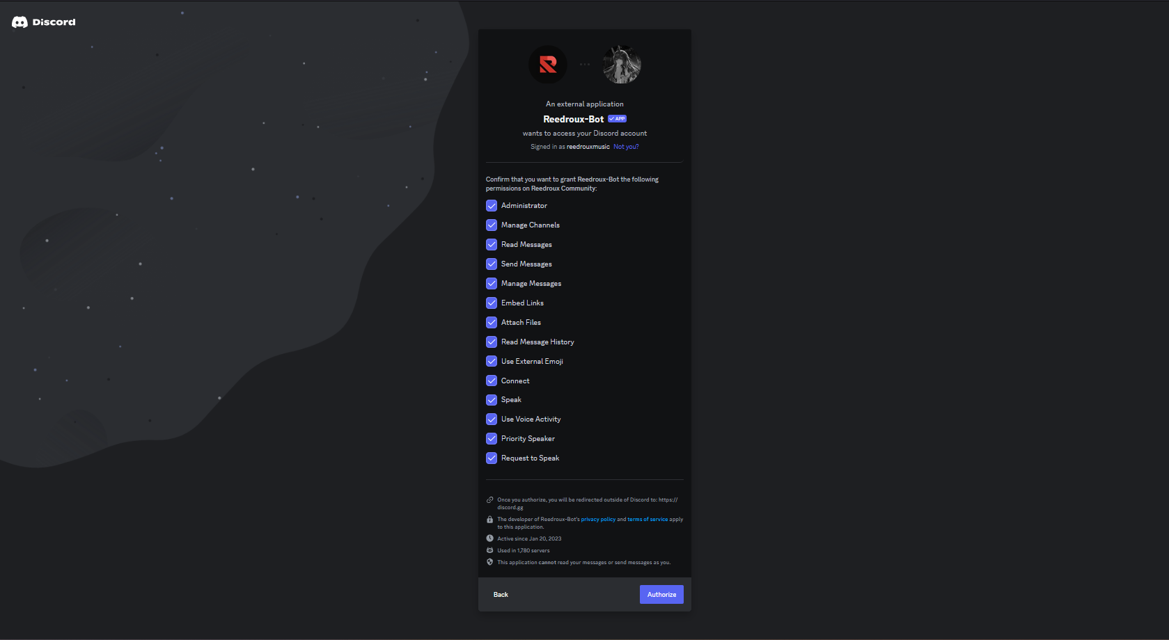 If you want to disable Administrator permission from Reedroux, it will not work properly! You will still be able to listen to basic music features but some things won't work.